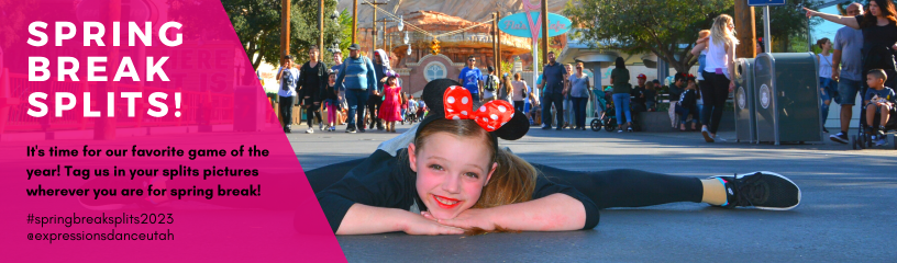 Show us your best “spring break splits” wherever you are! Tag @expressionsdanceutah in your Facebook/Instagram posts and stories and use the hashtag #springbreaksplits2023